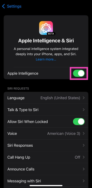 步骤一:前往设置并选择Apple 智能和 Siri。