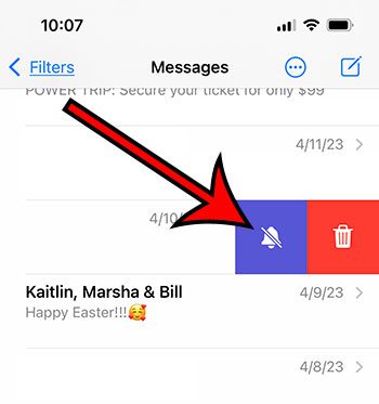 步骤 2:向左滑动您想要显示提醒的短信讨论。