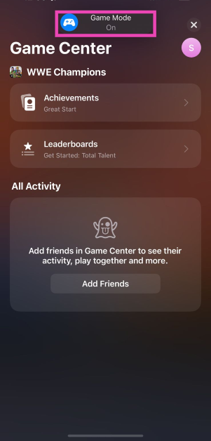 每当您在设备上启动游戏时,iPhone 都会自动打开游戏模式。要关闭游戏模式,请在屏幕上弹出通知图块时点击它,或者转到控制中心并点击游戏标题。