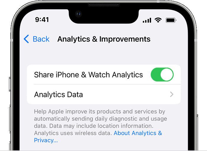 是的,用户可以选择不共享 Analytics 数据。转到“设置”>“隐私”>“分析和改进”。关闭“共享 iPhone 分析”。这会阻止您的设备向 Apple 发送数据。它不会影响您 iPhone 的功能,但可能会限制个性化改进。