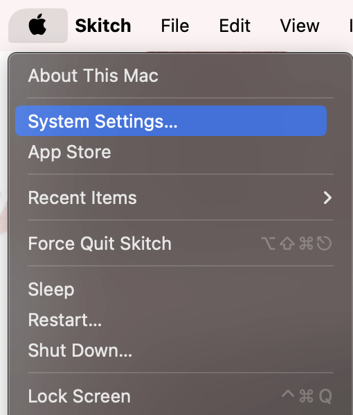 使用苹果菜单在屏幕顶部,选择系统设置从下拉列表中。