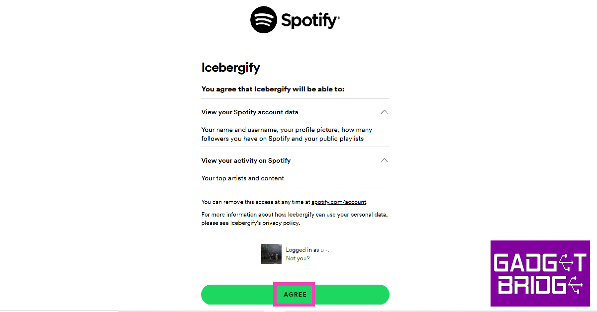 第4步:授予 Icebergify 权限以查看您的 Spotify 帐户数据和收听活动。