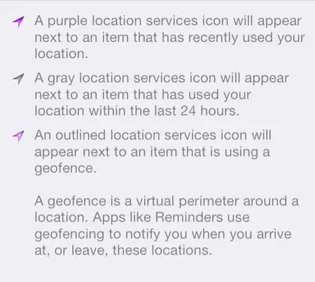 - 一个粉红色轮廓箭头意味着该应用程序正在使用地理围栏。这是特定地理位置周围的区域,当您进入地理围栏时,应用程序或提醒将触发通知或活动。
