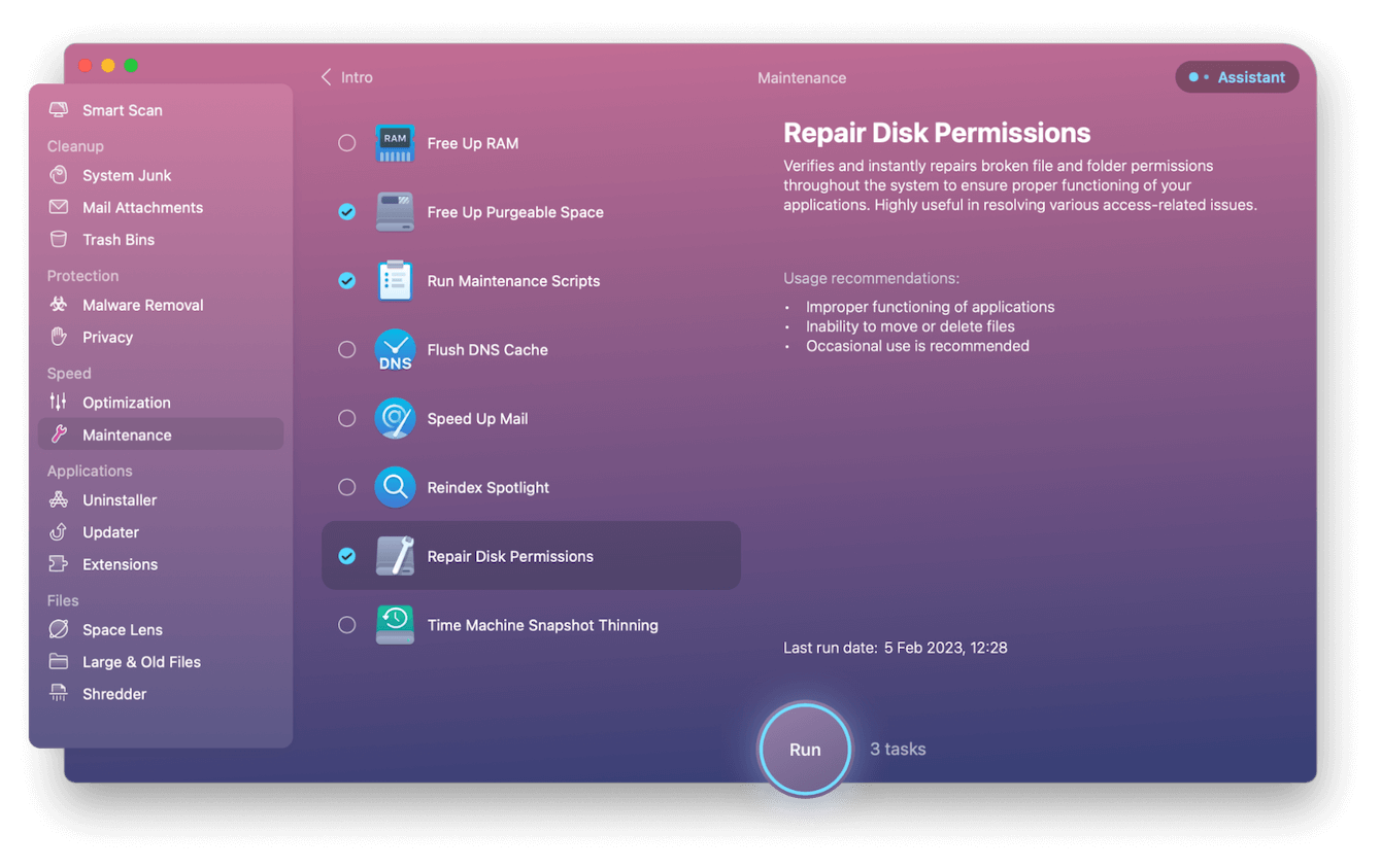 该应用程序的维护模块是专门为此类任务构建的。通过选择各种任务,您可以优化 macOS、提高驱动器性能并修复许多应用程序错误。