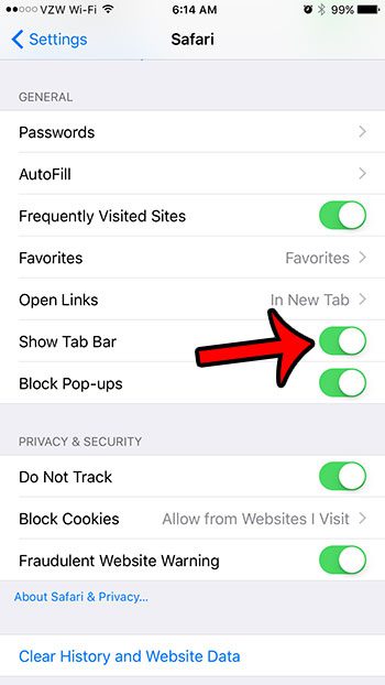 Safari iOS 浏览器有一个选项,可以在屏幕顶部启用选项卡栏,允许您点击任何打开的选项卡来查看不同的页面,甚至创建新选项卡。我们下面的指南将向您展示您需要做什么才能利用 iPhone 上的此功能。