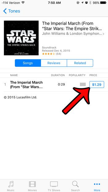 步骤5:点击铃声旁边的价格按钮,然后按照屏幕上的说明完成购买并将铃声下载到您的设备。