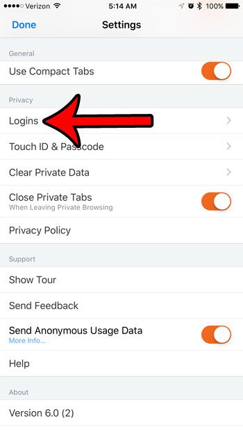 我们的指南在下面继续提供有关如何查看 Firefox iPhone 应用程序中保存的密码的更多信息,包括这些步骤的图片。
