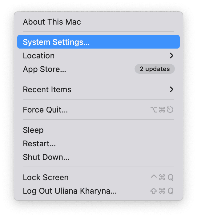- 单击 Apple 菜单并选择“系统偏好设置”(或在最新版本的 macOS 上选择“系统设置”)。