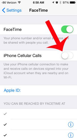 第三步:点击右侧的按钮iPhone 蜂窝电话。请注意,关闭时按钮周围不会有任何绿色阴影,如下图所示。