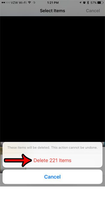 第6步:点击红色删除项目按钮以确认您希望从 iPhone 中永久删除这些照片。请注意,一旦按下此按钮,您将无法恢复这些图片。