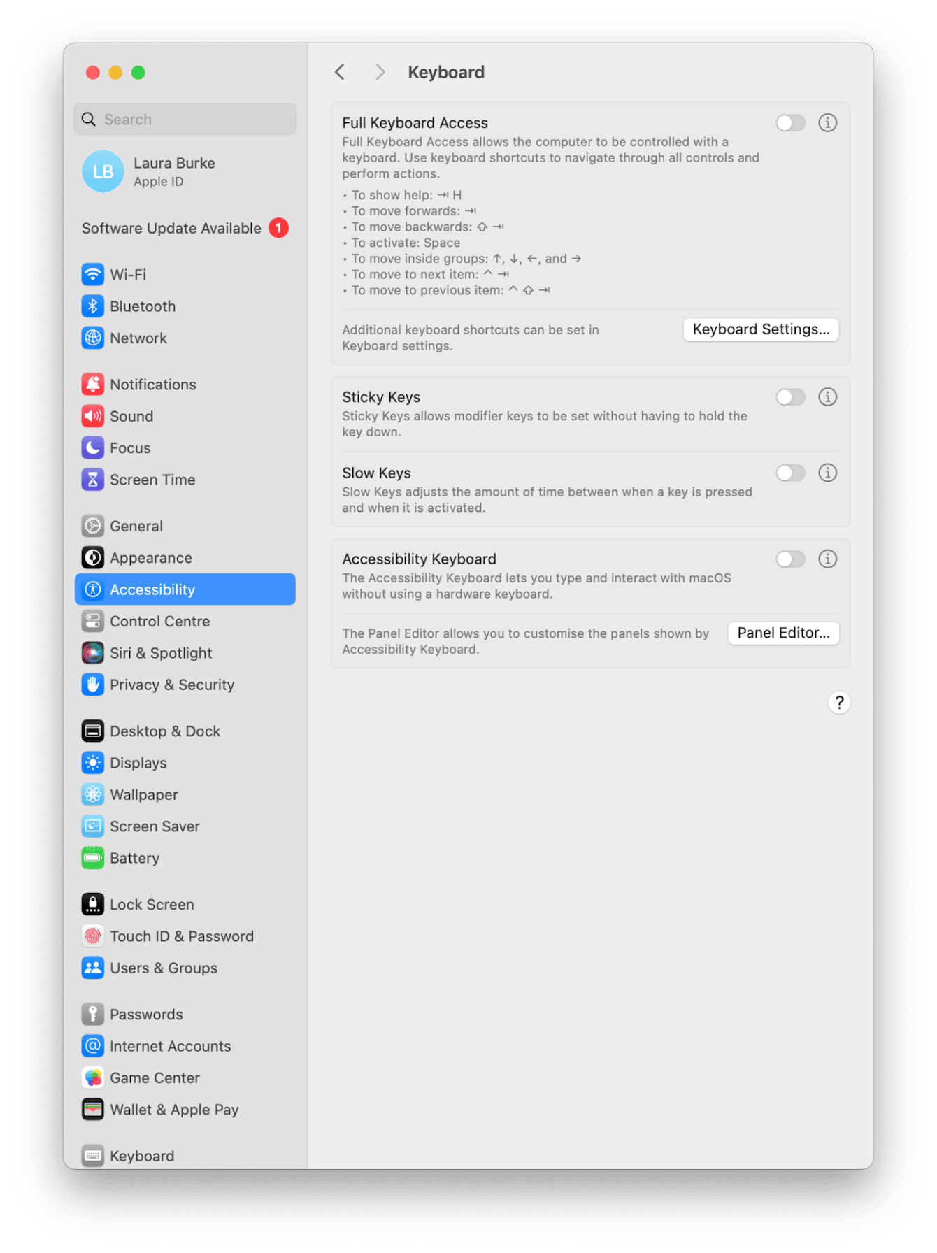 - 选择 Apple 主菜单 > 系统设置 > 辅助功能。