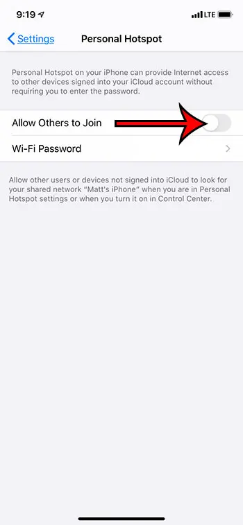 - 您可以随时打开或关闭个人热点,甚至可以更改密码。