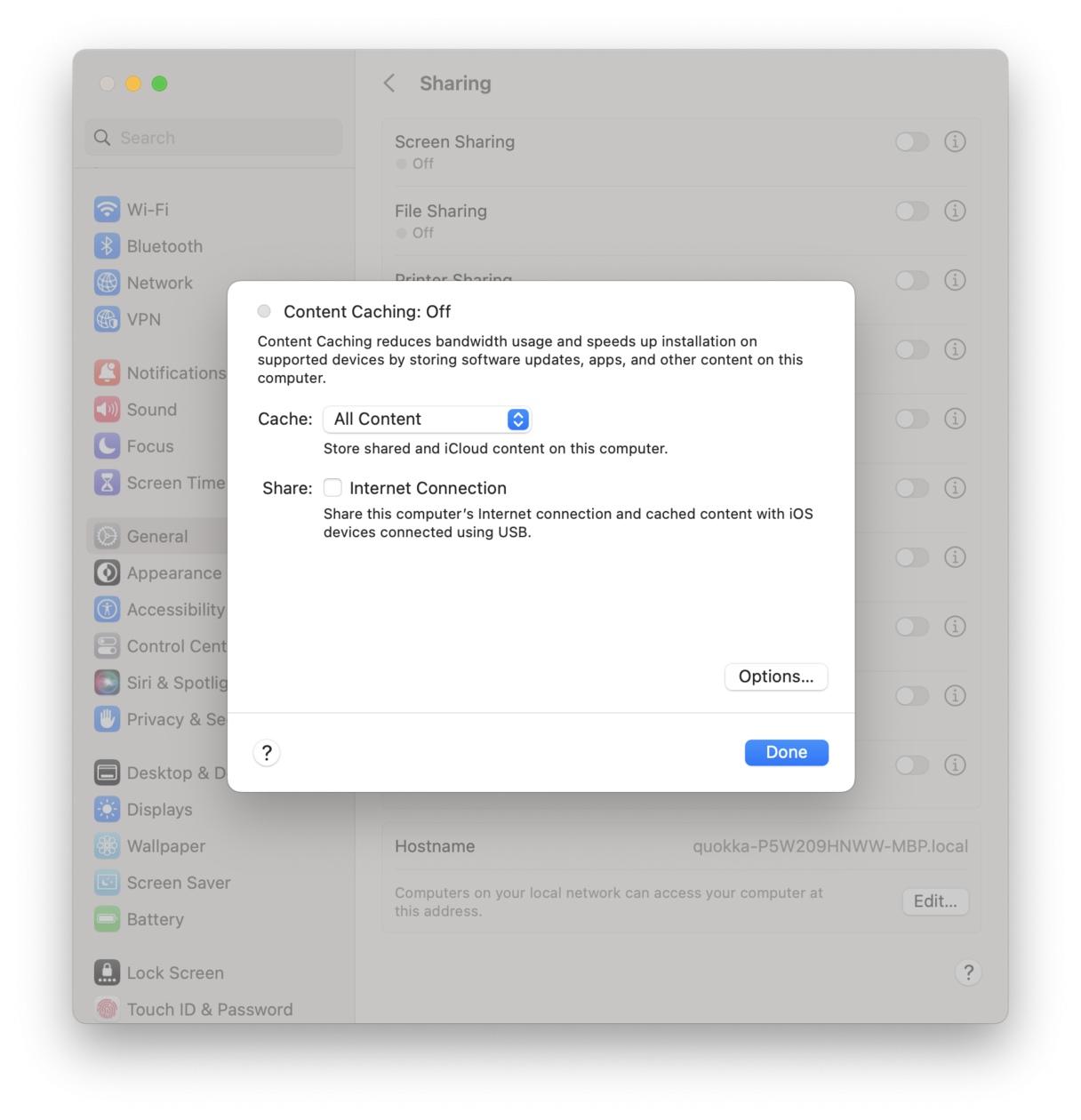 如果您的互联网工作正常,请尝试调整内容缓存以减少带宽使用并加快安装速度。以下是针对 macOS Monterey 和任何旧版 macOS 版本的操作方法: