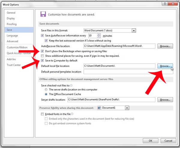 本教程还将假设您希望默认将文档保存到计算机,并且希望在单击“保存”图标时能够直接转到默认保存文件夹。如果您不想进行这些更改,可以忽略步骤 5 中的这些选项。