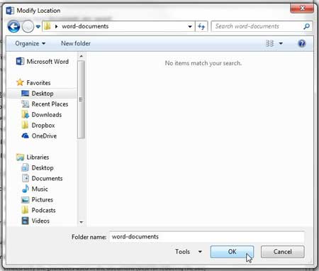 步骤 6:选择新的默认保存位置,然后单击好的按钮。