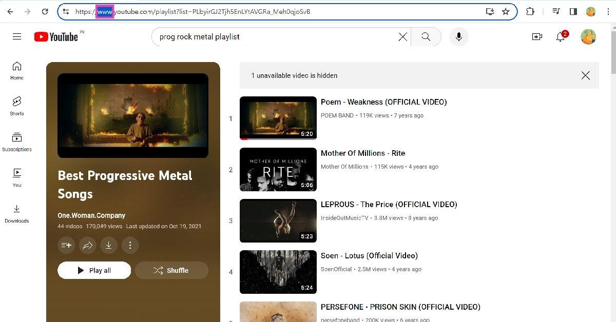 第 1 步:打开您要复制或合并的 YouTube 播放列表。