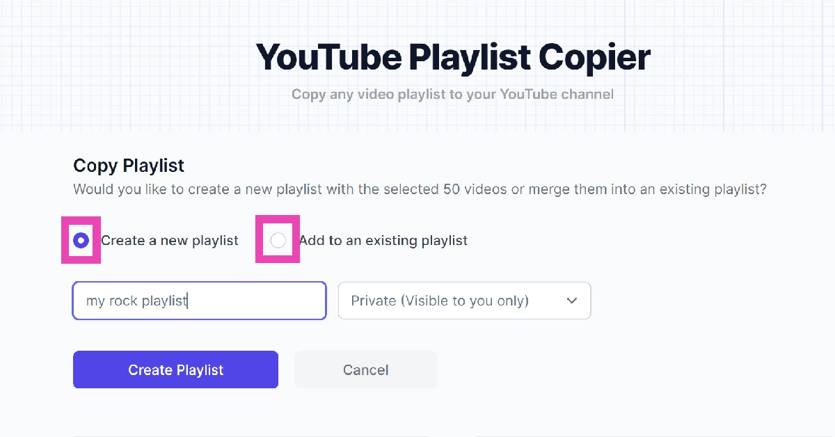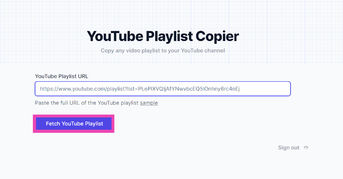 步骤3:输入网址您要复制的播放列表的名称。