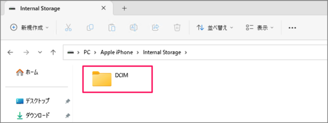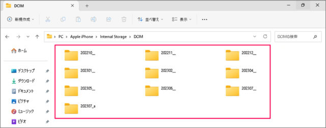 将显示[年/月]文件夹。照片和视频文件保存在这些文件夹中。PCApple iPhoneInternal StorageDCIM -