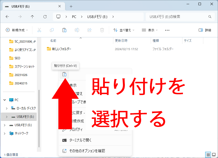 右键单击出现的窗口的空白区域,然后选择粘贴。