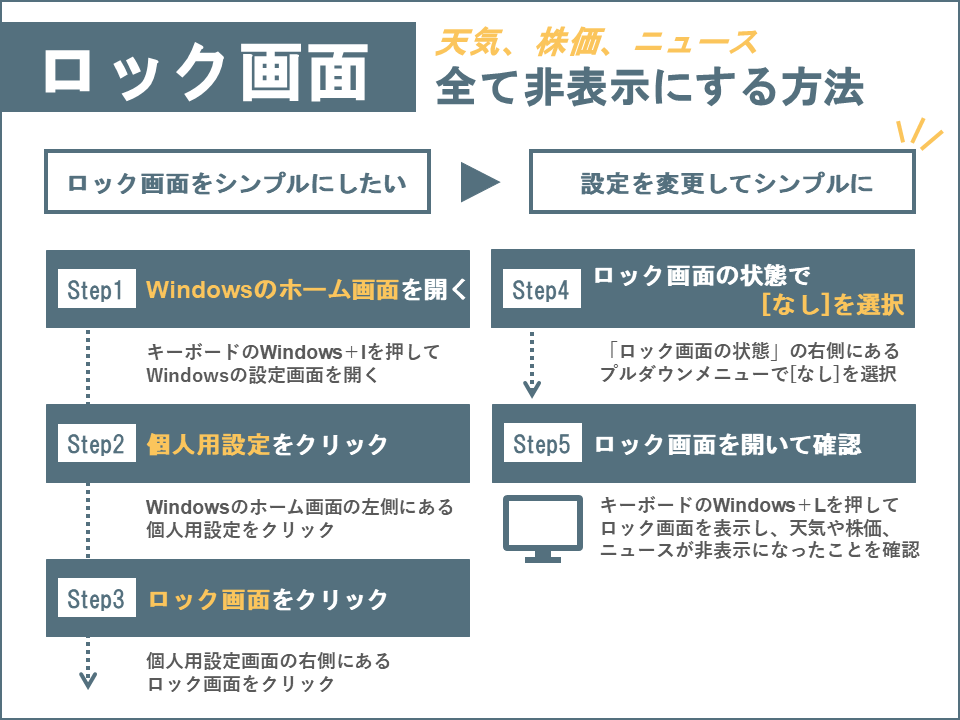 - 键盘视窗+L按 打开锁屏并确认隐藏天气、股票价格和新闻。