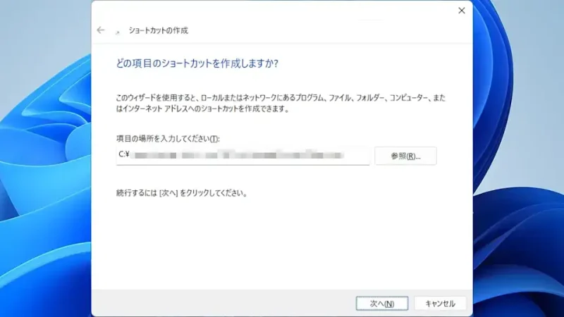 - 从创建快捷方式开始请输入物品的位置输入以下内容以创建快捷方式。