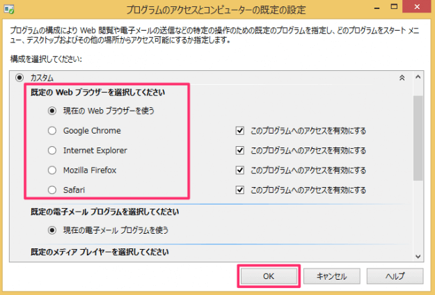 单击此按钮将打开“自定义”窗口,因此让我们看一下“选择默认网络浏览器”。