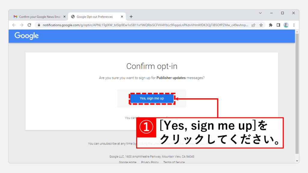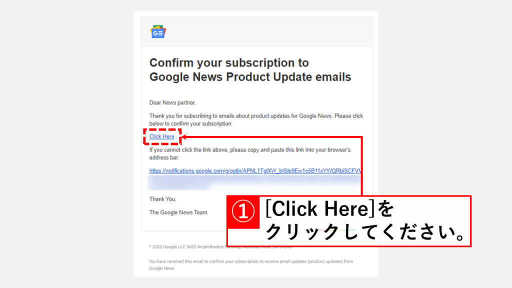 首先,打开“确认您的 Google 新闻电子邮件订阅 - 产品更新”并按照电子邮件中的说明进行操作。点击【点击这里】请。