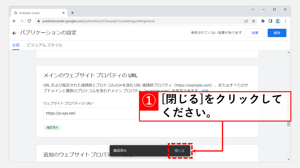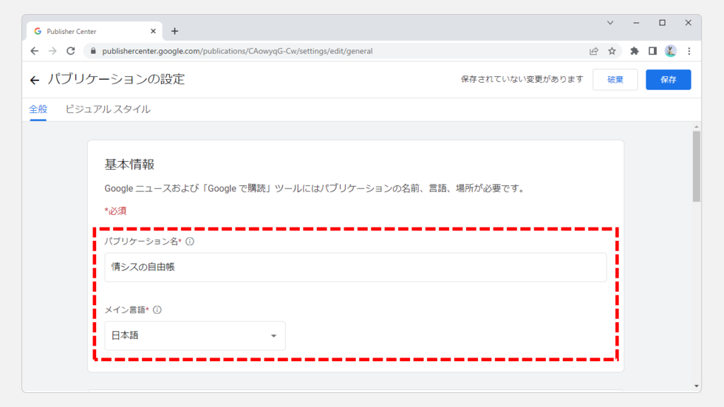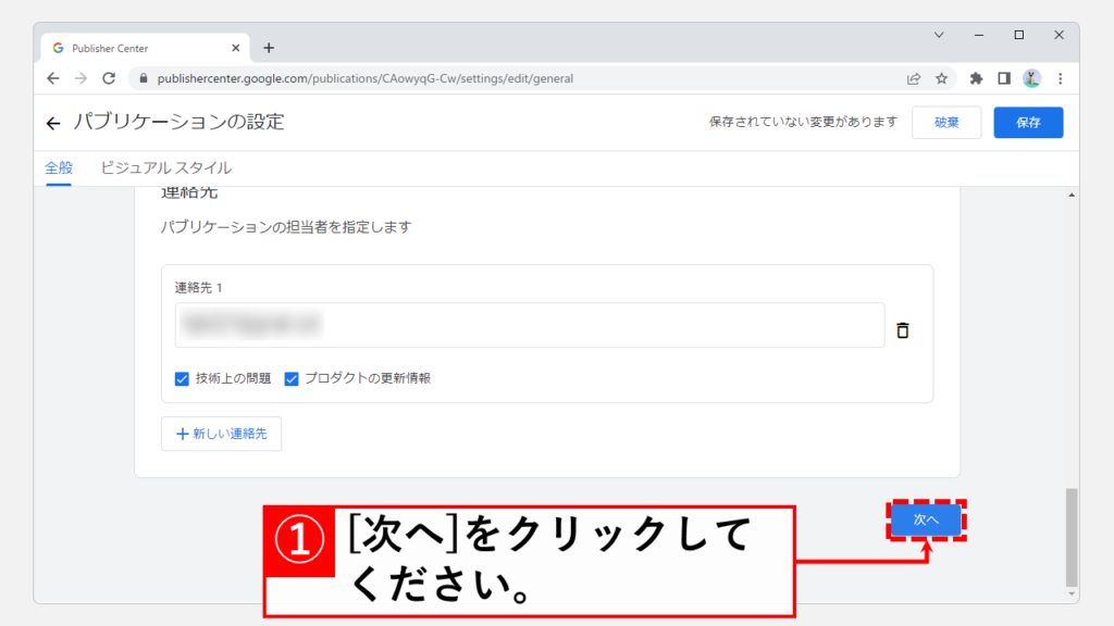 从这里,验证新添加的出版物(网站)的语言、所有者、联系电子邮件地址和徽标。