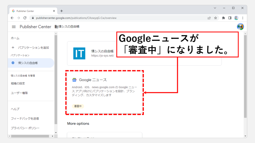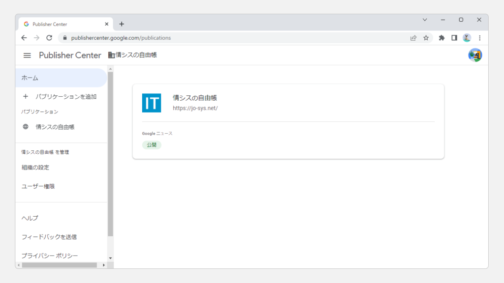 当 Google 新闻的审核结果为“公开”时的屏幕