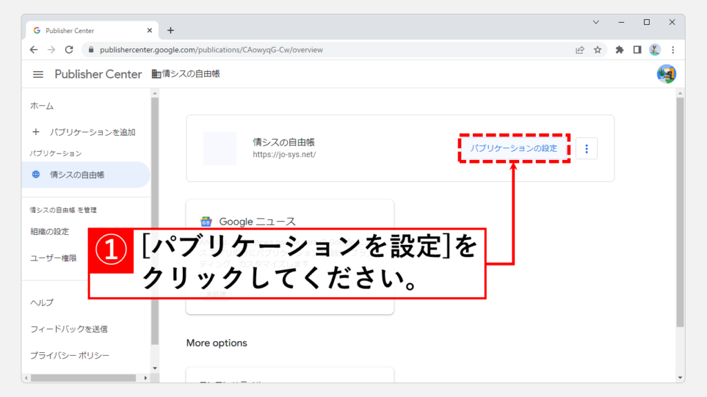 出版商中心您可以通过单击左侧“发布”栏中显示的站点名称来移动到此页面。