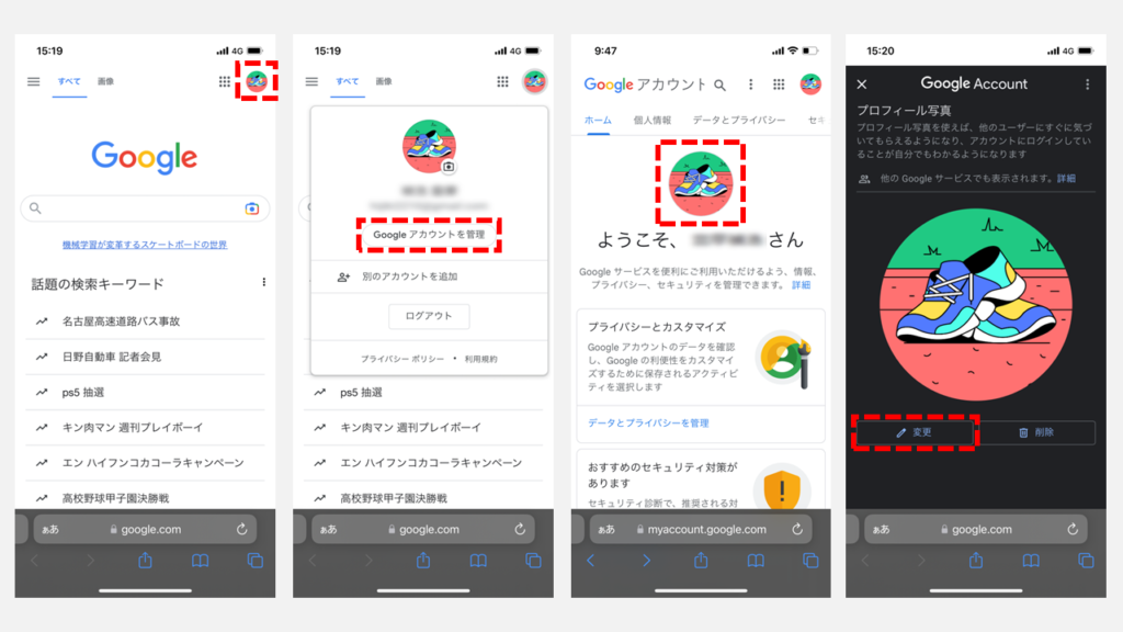 该页面显示使用Google服务时显示的信息。更改Google帐户图标(个人资料照片)的步骤以及如何将图标(个人资料照片)恢复为初始图标我会详细解释一下。