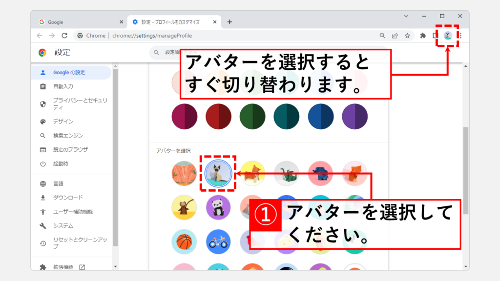 最后,我们将详细解释如何更改Chrome中显示的个人资料头像(图标)。