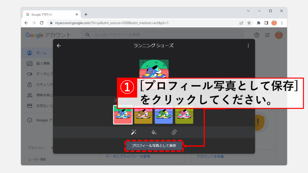 - 从插图、Google 相册或您的计算机中选择图像,然后单击“另存为个人资料图片”。