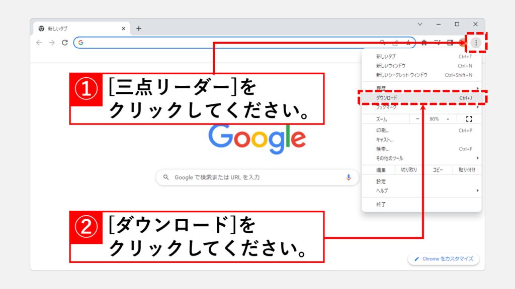 启动 Google Chrome 并点击右上角单击[三点引线]请。