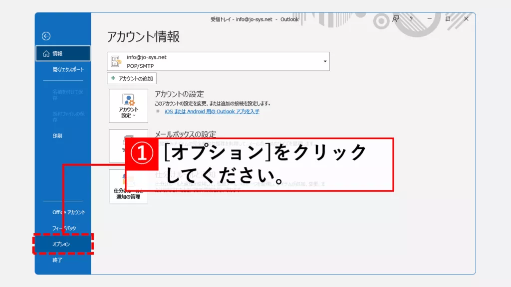 步单击 Outlook 主屏幕上的“选项”