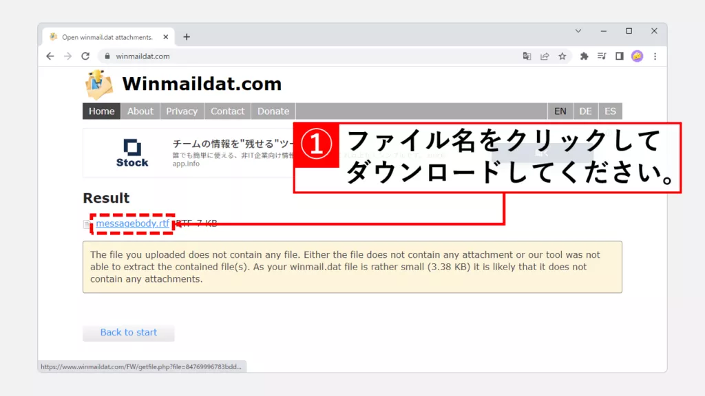 该站点将能够从胶囊中提取邮件并打开/查看 winmail.dat 的内容。