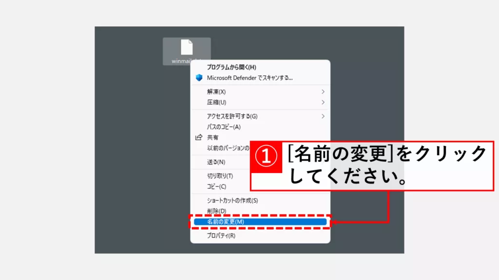 单击winmail.dat文件,然后单击键盘F2您还可以通过按 来更改文件名(扩展名)。