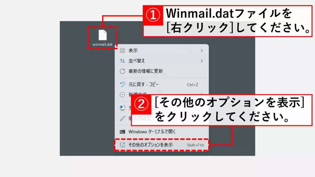 [右键单击] winmail.dat 文件,然后单击“显示更多选项”