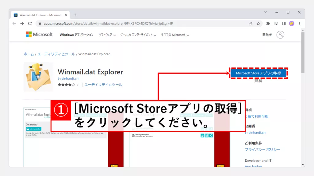单击“打开 Microsoft Store”,将打开一个窗口,您可以在其中获取 Winmail.dat Explorer。