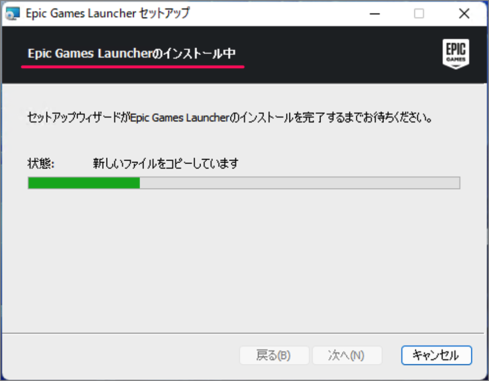 Epic Games Launcher 安装开始