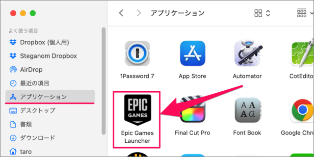 转至 Finder 中的“应用程序”文件夹并启动 Epic Games Launcher。