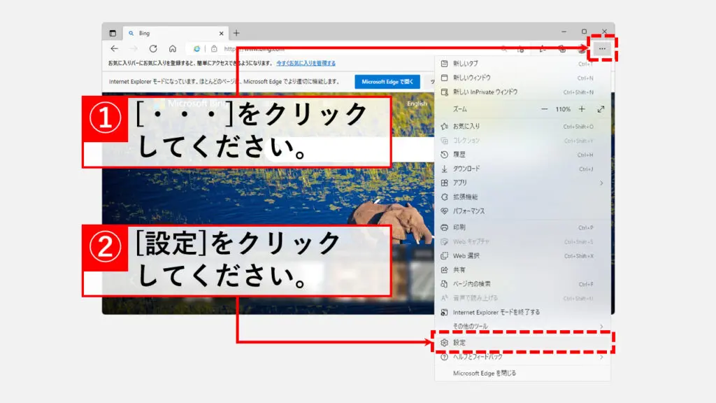 - 启动 Microsoft Edge 并单击右上角的 [...](三个点)→ [设置]