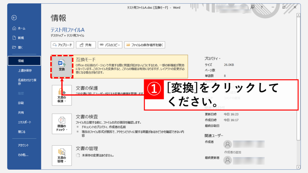 如果您使用Word的转换功能,原始.doc文件将被替换为.docx文件,并且.doc文件将不会保留(它将被删除)。