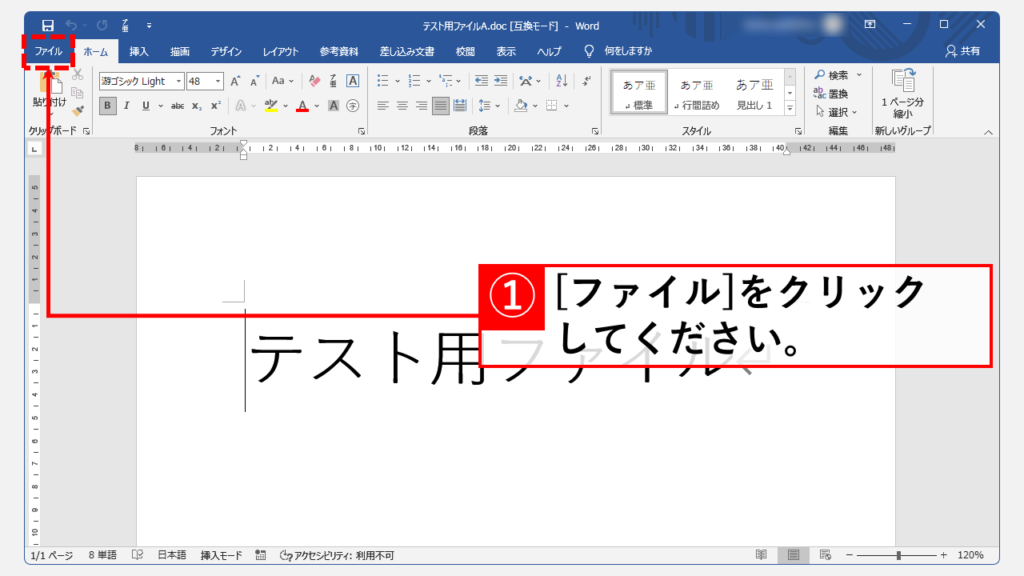 覆盖并保存后,.docx 格式的转换完成,您可以确认屏幕顶部的文件名已更改为 .docx 格式。