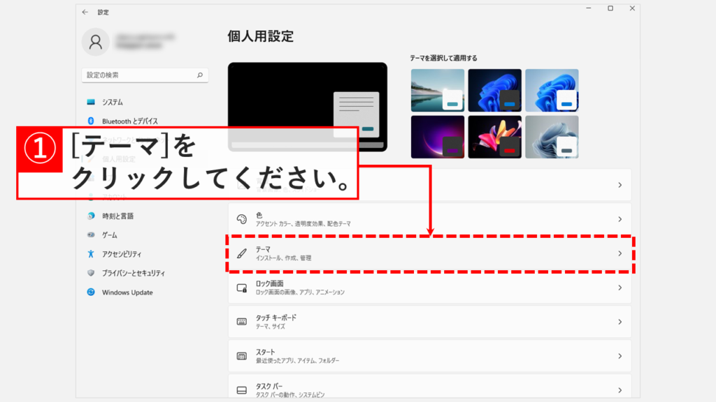 单击“主题”转到标有“个性化 > 主题”的页面。
