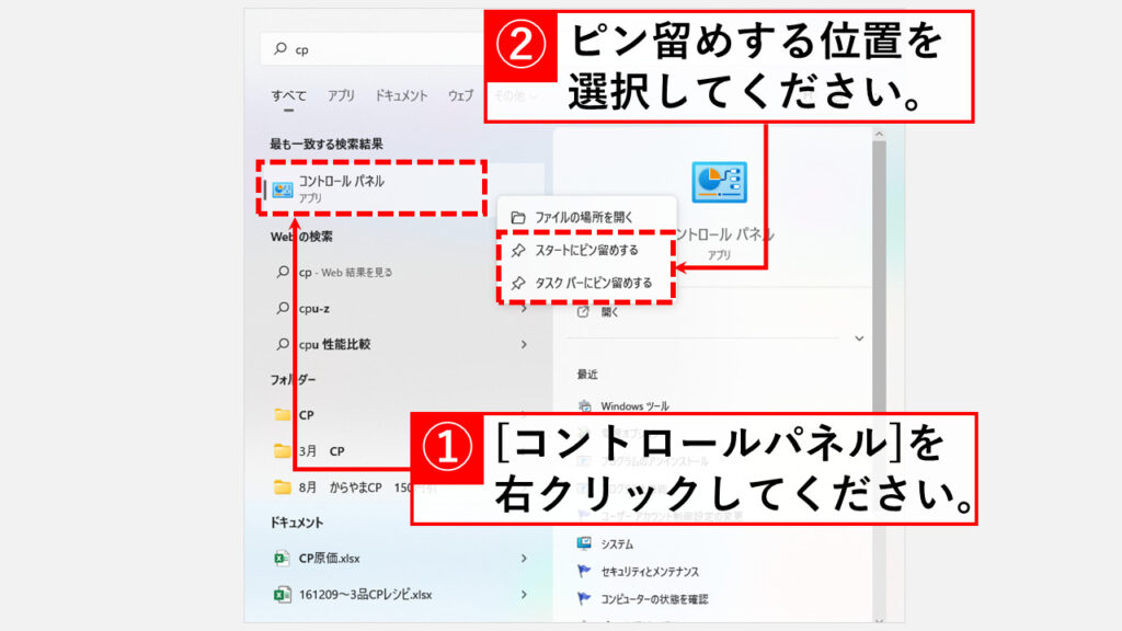如何在 Windows 11 任务栏和开始菜单上创建控制面板快捷方式步骤 3 右键单击“控制面板”并决定将其固定在哪里。