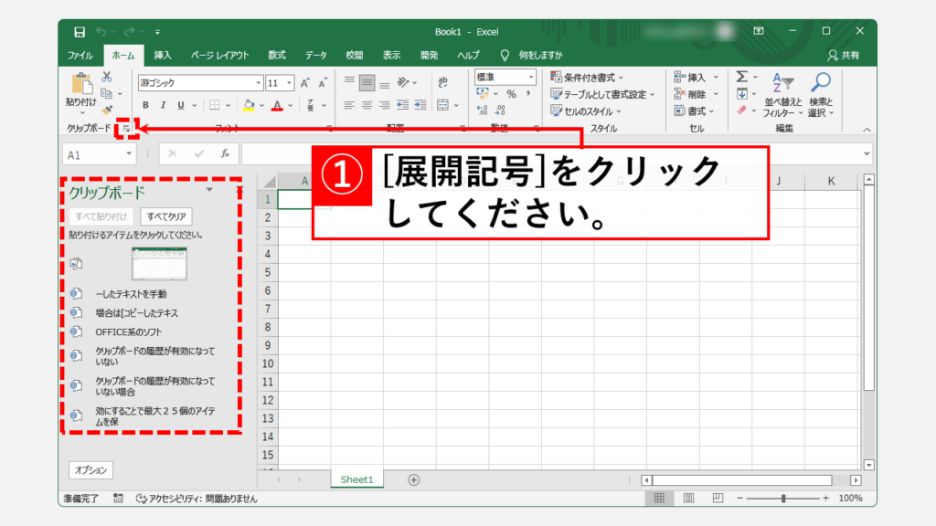 当您单击[展开符号]时,其下方将出现一个标有“剪贴板”的菜单。