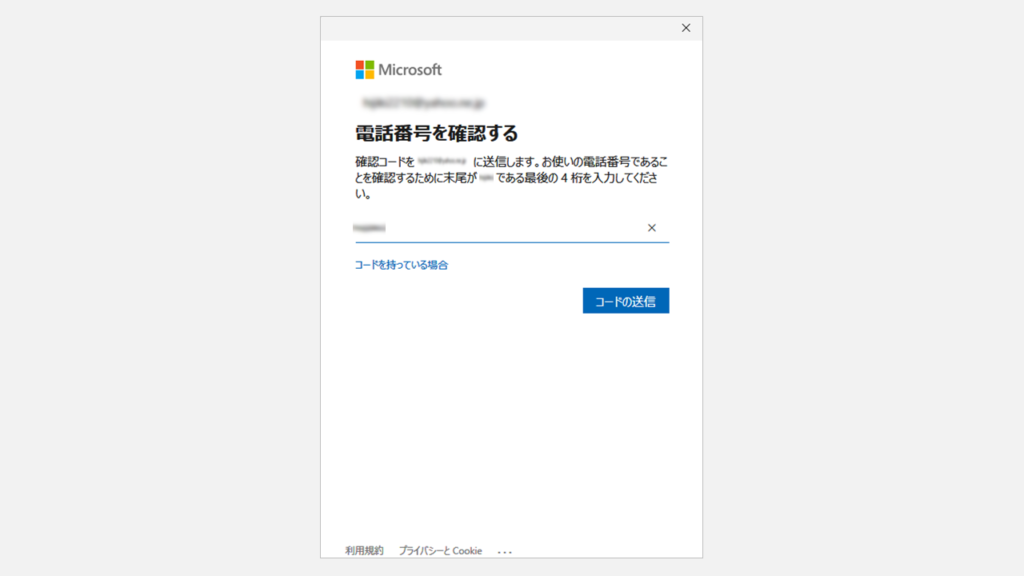 步输入您在创建 Microsoft 帐户时注册的电话号码的最后 4 位数字,然后单击“发送代码”
