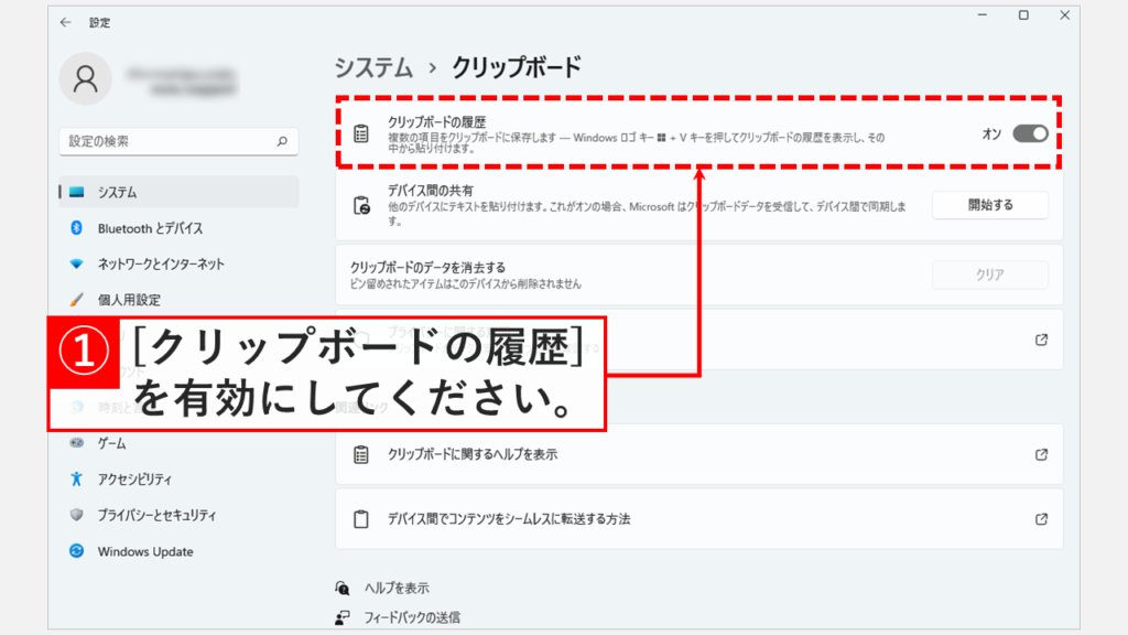 您可以通过单击任务栏上的Windows按钮→[设置]→[系统]→[剪贴板]来启动该窗口。