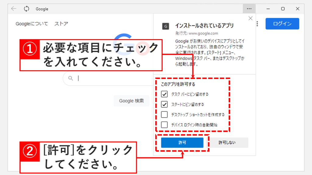 步选择您想要显示已安装应用程序(网站)的位置,然后单击[允许]